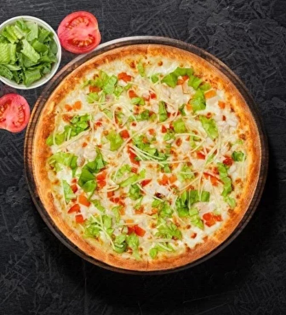 Белый соус, курица, томат, сыр моцарелла, лист салата